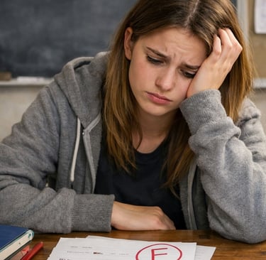 He is in a bad mood because he failed the test.